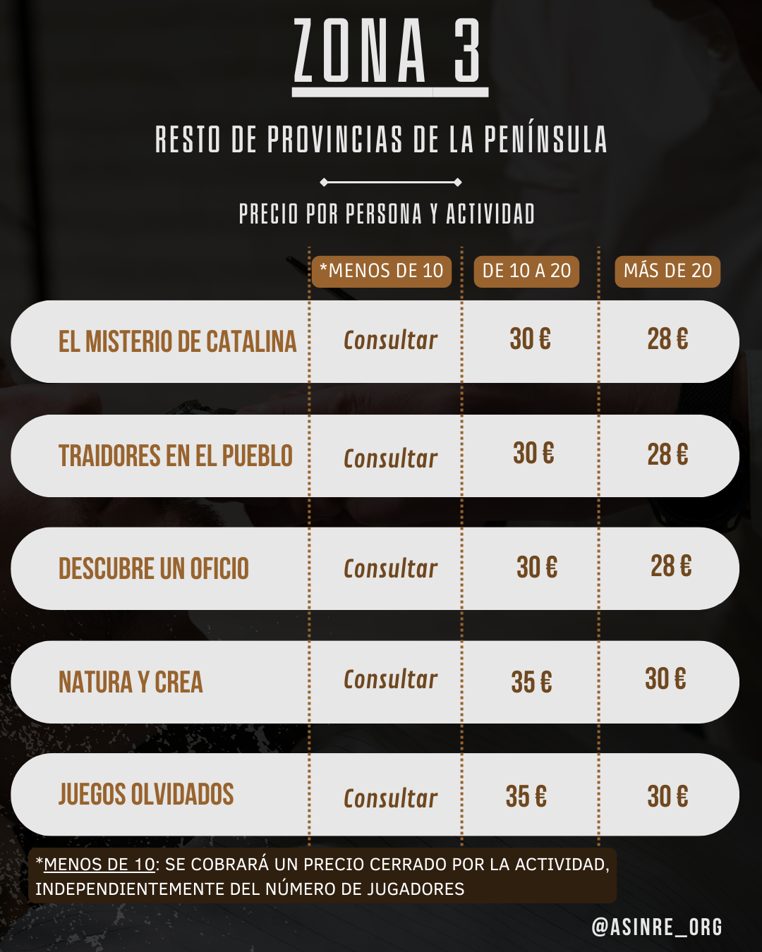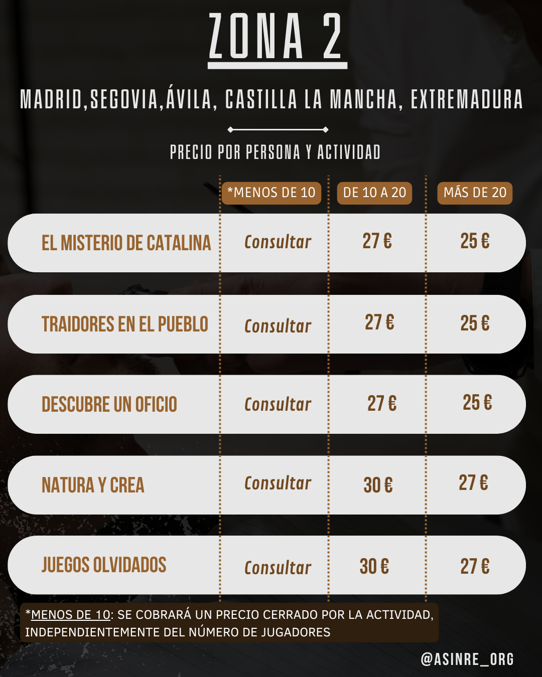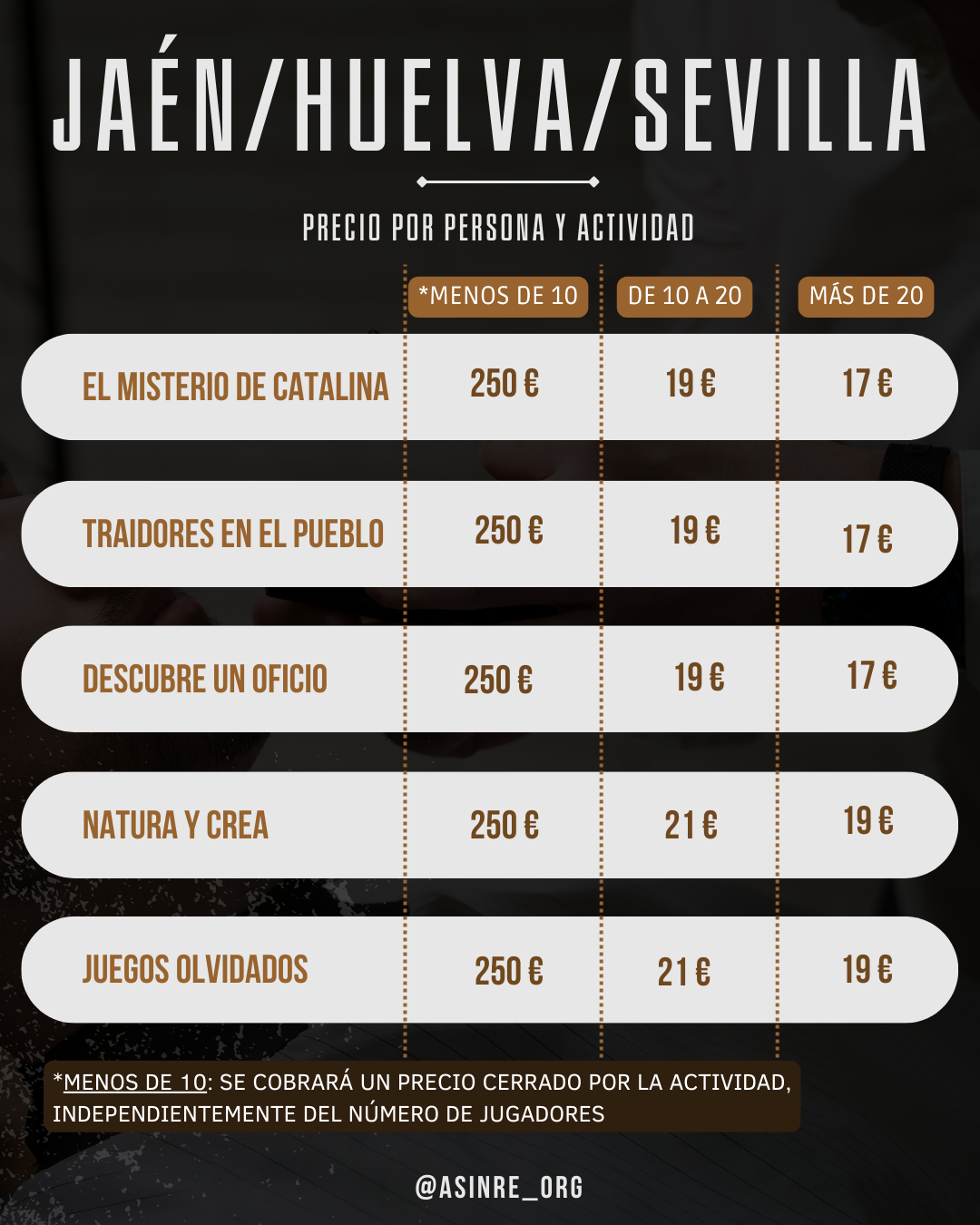 Abajo encontrarás nuestros precios para particulares: familia, amigos, cumpleaños, casas rurales, despedidas, etc...